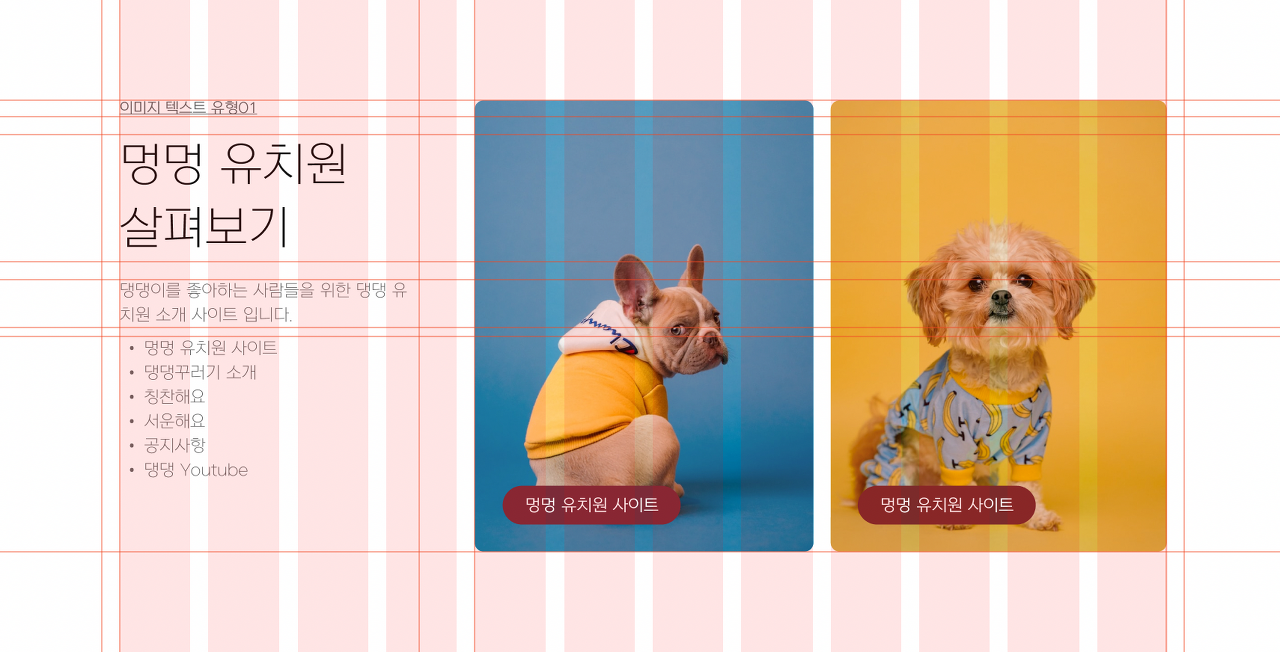 ์คํธ ์์ญ / ์ด๋ฏธ์ง์์ญ1 / ์ด๋ฏธ์ง์์ญ2๋ก ๊ตฌ์กฐ๋ฅผ ๋จผ์ ์ค์ ํ ๋ค ์ธ๋ถ ๊ตฌ์กฐ๋ฅผ ์ค์ ํฉ๋๋ค.